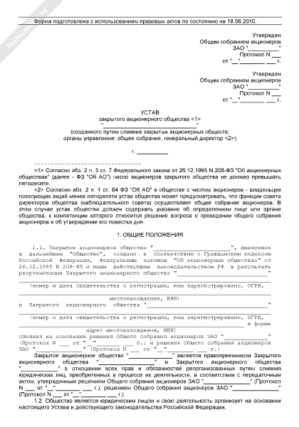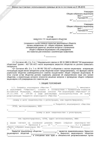 - 102Устав закрытого акционерного общества, созданного в результате слияния закрытых акционерных обществ (органы управления: общее собрание, генеральный директор)
