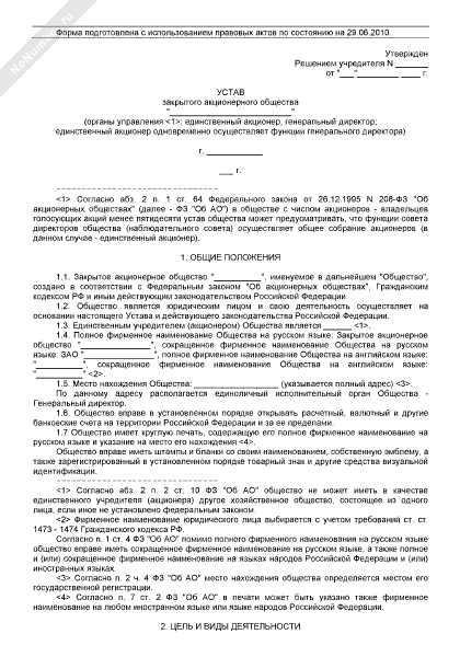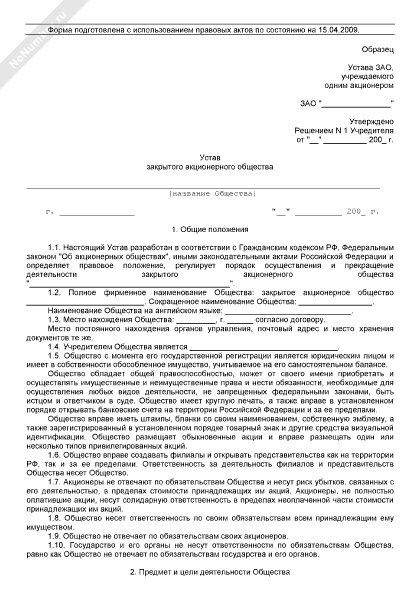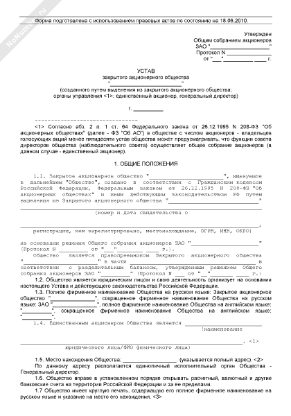 - 116Устав закрытого акционерного общества, учреждаемого единственным акционером
