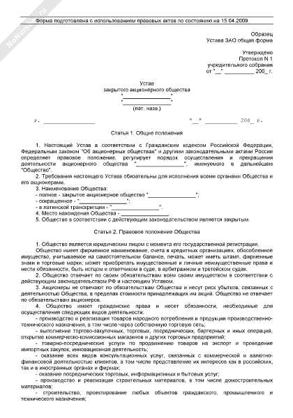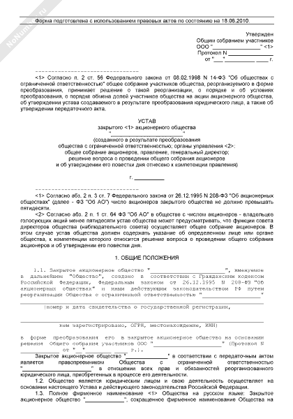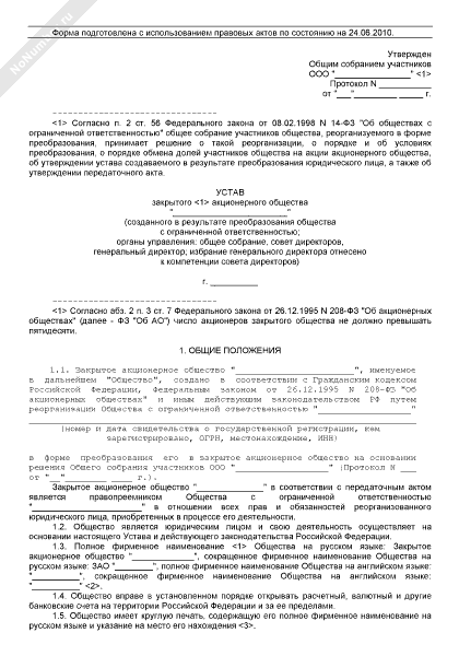 - 115Устав закрытого акционерного общества, созданного в результате преобразования открытого акционерного общества