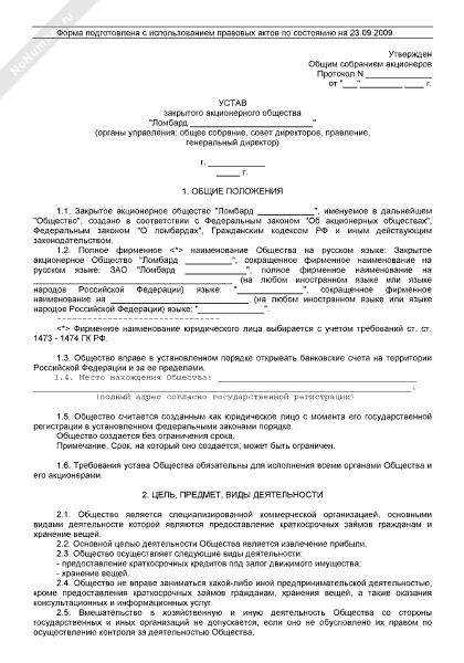 - 120Устав ЗАО ломбарда (органы управления: общее собрание, совет директоров, правление, генеральный директор)