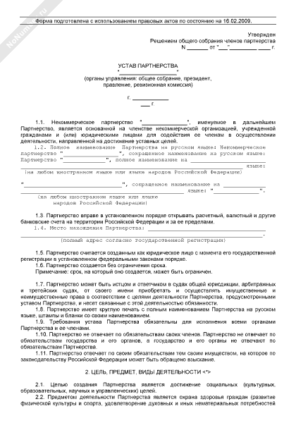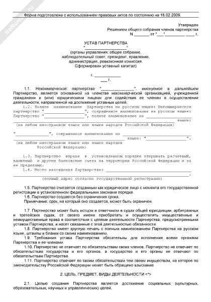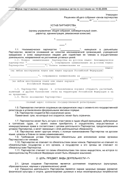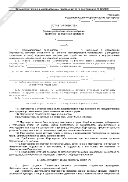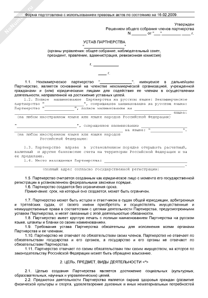 - 162Устав некоммерческого партнерства (органы управления: общее собрание, наблюдательный совет, президент, правление, администрация, ревизионная комиссия. Сформирован уставный капитал)