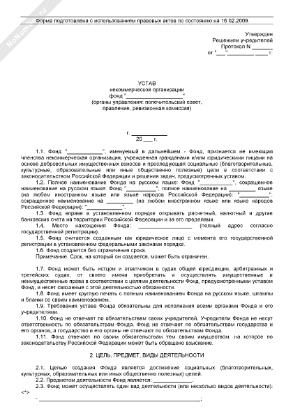 - 168Устав некоммерческой организации — фонда (органы управления: попечительский совет, правление, ревизионная комиссия)