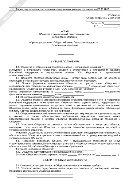 - 177Устав общества с ограниченной ответственностью — холдинговой компании (органы управления: общее собрание, генеральный директор, ревизионная комиссия)