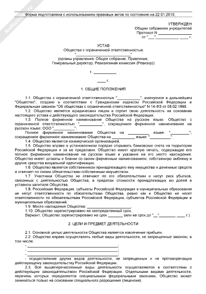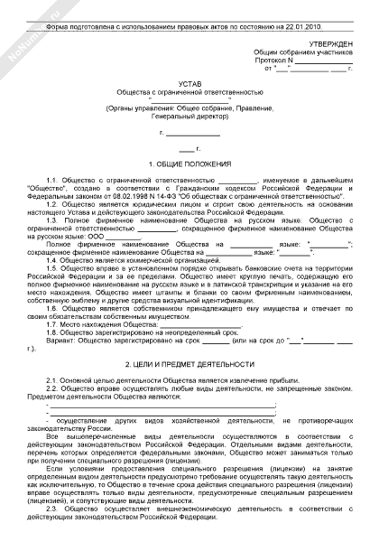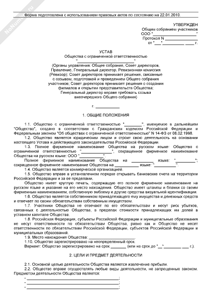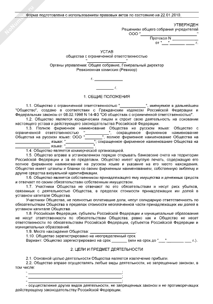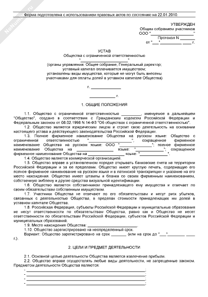 - 179Устав общества с ограниченной ответственностью (органы управления: общее собрание, генеральный директор; уставный капитал оплачивается имуществом; установлены виды имущества, которые не могут быть внесены участниками для оплаты долей в уставном капитале общества)