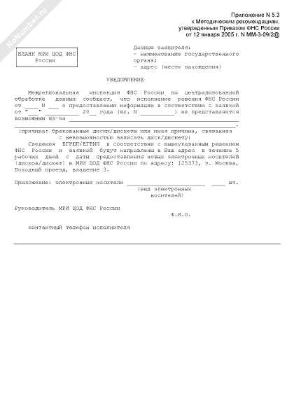 - 185Уведомление межрегиональной инспекции Федеральной налоговой службы России по централизованной обработке данных о невозможности предоставления сведений, содержащихся в едином государственном реестре юридических лиц и едином государственном реестре индивидуальных предпринимателей, по причине предоставленных бракованных дисков/дискет или иной причине, связанной с невозможностью записать диск/дискету