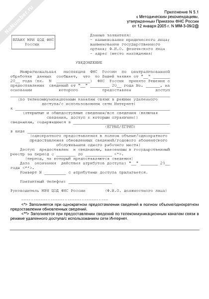 - 183Уведомление межрегиональной инспекции Федеральной налоговой службы России по централизованной обработке данных о предоставлении доступа к сведениям, содержащимся в едином государственном реестре юридических лиц и едином государственном реестре индивидуальных предпринимателей