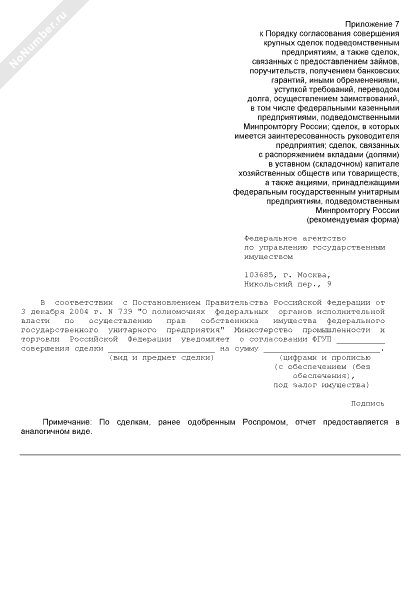 - 186Уведомление Министерства промышленности и торговли Российской Федерации о согласовании ФГУП совершения сделки