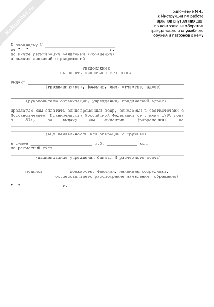 - 187Уведомление на оплату лицензионного сбора за выдачу лицензии (разрешения) на деятельность или операции с оружием