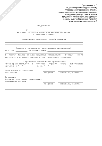 - 189Уведомление на право выступать перед таможенными органами в качестве гаранта