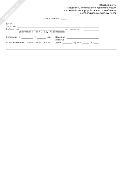 - 188Уведомление на производство работ при эксплуатации контактной сети и устройств электроснабжения автоблокировки железных дорог
