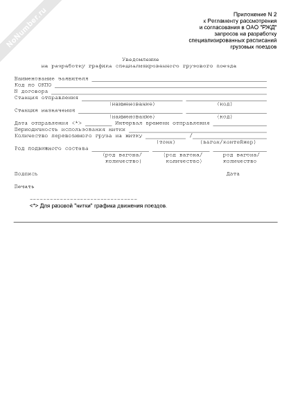 - 190Уведомление на разработку графика специализированного грузового поезда