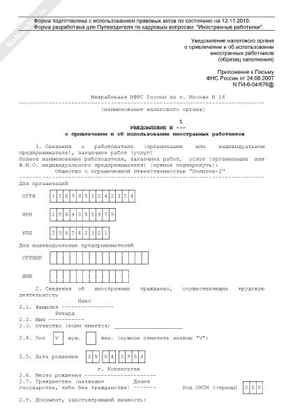 - 195Уведомление налогового органа о привлечении и об использовании иностранных работников