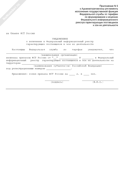 - 301Уведомление о включении в Федеральный информационный реестр гарантирующих поставщиков и зон их деятельности