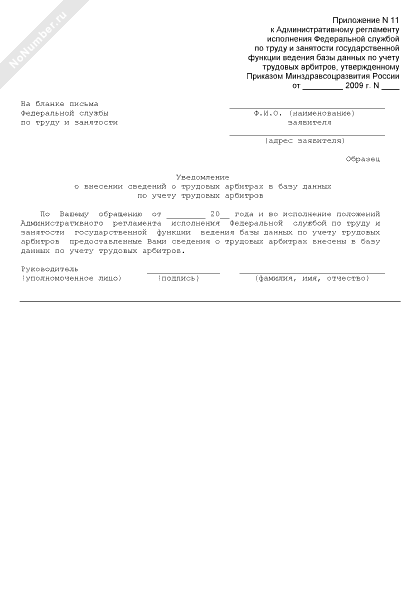 - 308Уведомление о внесении сведений о трудовых арбитрах в базу данных по учету трудовых арбитров