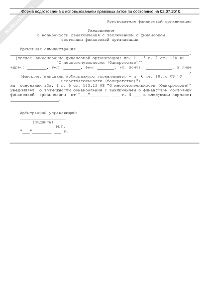 - 312Уведомление о возможности ознакомления с заключением о финансовом состоянии финансовой организации