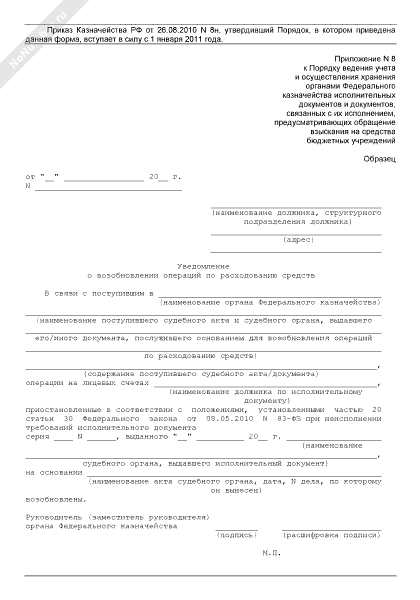 - 317Уведомление о возвращении документов, приложенных к исполнительному документу в органе Федерального казначейства