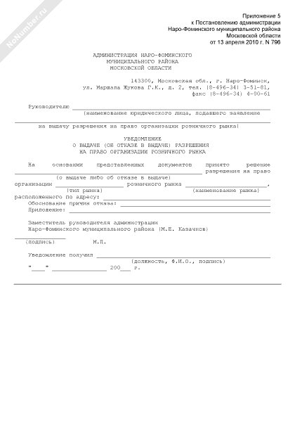 - 319Уведомление о выдаче (об отказе в выдаче) разрешения на право организации розничного рынка на территории Наро-Фоминского муниципального района Московской области
