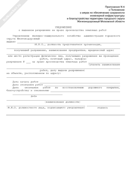 - 304Уведомление о выданном разрешении на право производства земляных работ на территории городского округа Железнодорожный Московской области