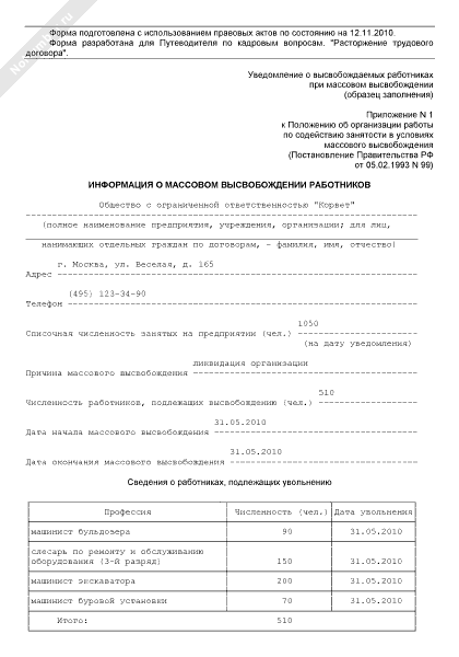 - 310Уведомление о высвобождаемых работниках при массовом высвобождении