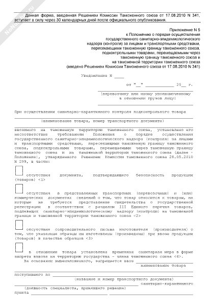- 313Уведомление о выявленных нарушения при осуществлении санитарно-карантинного контроля подконтрольного товара, ввозимого на таможенную территорию таможенного союза