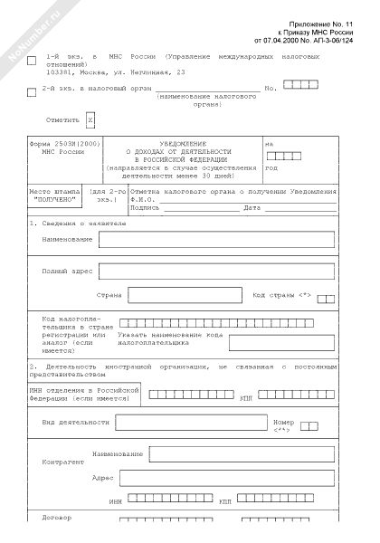 - 334Уведомление о доходах от деятельности иностранной организации в Российской Федерации. Форма № 2503И(2000)