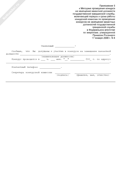 - 340Уведомление о допуске к участию в конкурсе на замещение вакантной должности государственной гражданской службы в Федеральном агентстве по энергетике