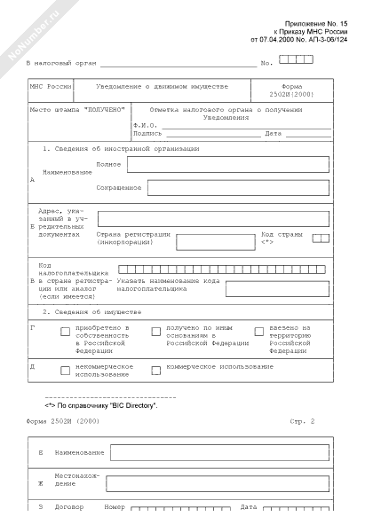 - 336Уведомление о движимом имуществе иностранной организации. Форма № 2502И(2000)