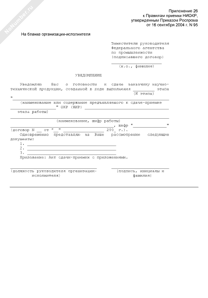 - 321Уведомление о готовности к сдаче заказчику научно-технической продукции, созданной в ходе выполнения этапа научно-исследовательской, (опытно-конструкторской) работы