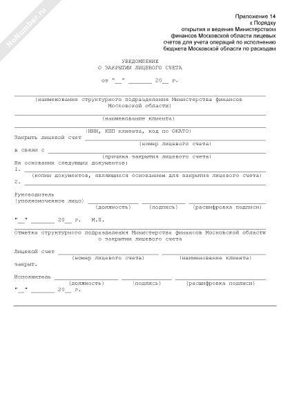 - 357Уведомление о закрытии лицевого счета в структурном подразделении Министерства финансов Московской области