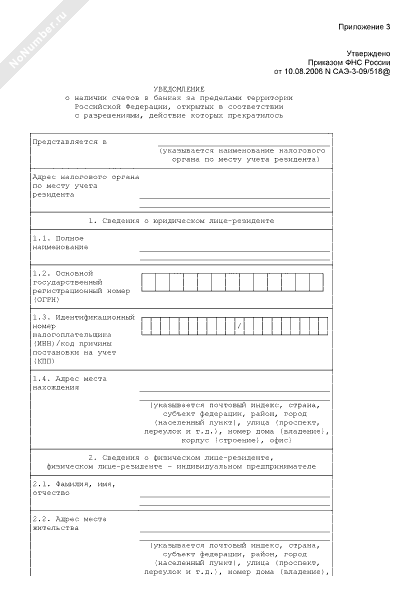 - 401Уведомление о наличии счетов в банках за пределами территории Российской Федерации, открытых в соответствии с разрешениями, действие которых прекратилось