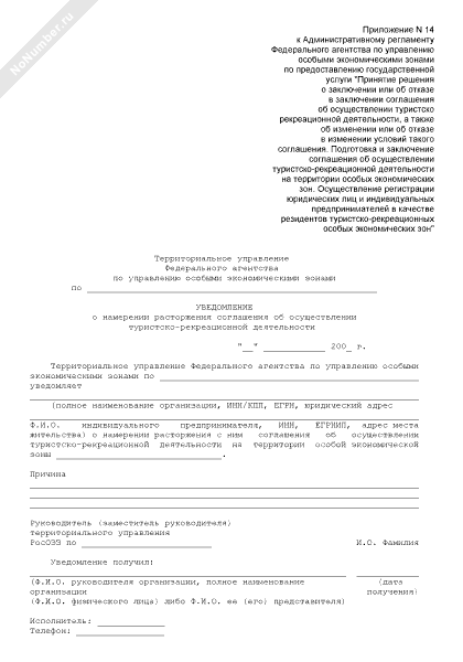 - 413Уведомление о намерении расторжения соглашения об осуществлении туристско-рекреационной деятельности на территории особой экономической зоны