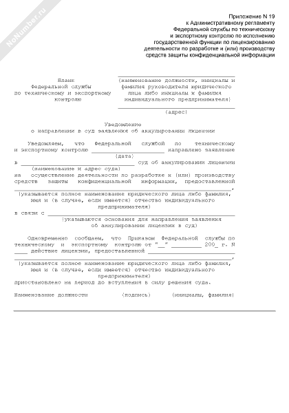 - 410Уведомление о направлении в суд заявления об аннулировании лицензии на осуществление деятельности по разработке и (или) производству средств защиты конфиденциальной информации