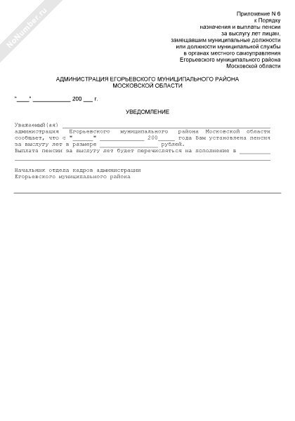 - 404Уведомление о назначении пенсии за выслугу лет лицам, замещавшим муниципальные должности или должности муниципальной службы в органах местного самоуправления Егорьевского муниципального района Московской области