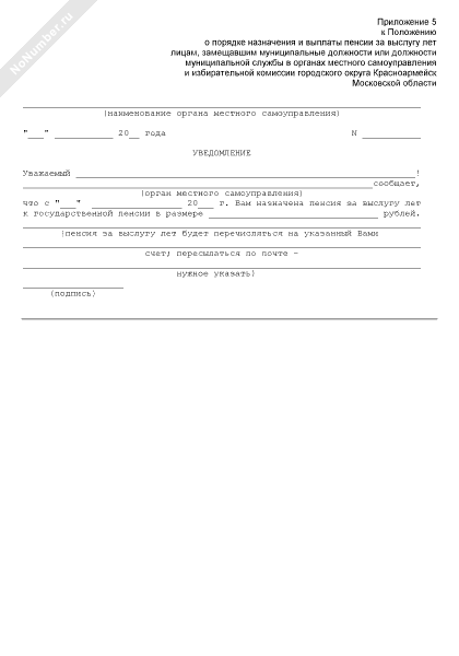- 405Уведомление о назначении пенсии за выслугу лет к государственной пенсии муниципальному служащему городского округа Красноармейск Московской области