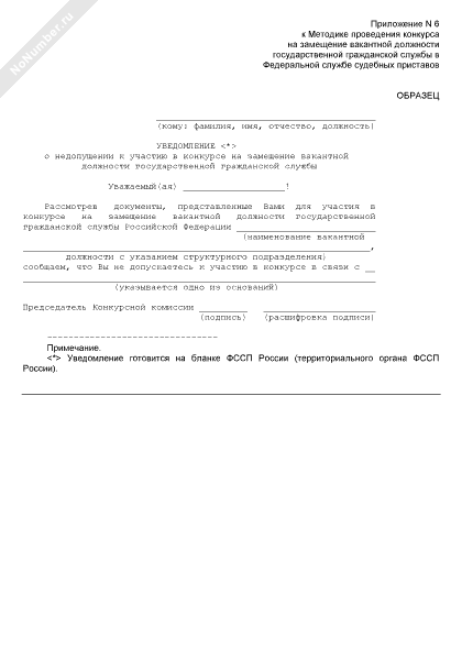- 403Уведомление о недопущении к участию в конкурсе на замещение вакантной должности государственной гражданской службы в Федеральной службе судебных приставов