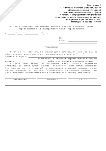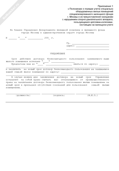 - 408Уведомление о необходимости переоформления договора безвозмездного пользования жилым помещением в городе Москве на новый срок (при сохранении оснований, дающих право пользования специально оборудованными жилыми помещениями)