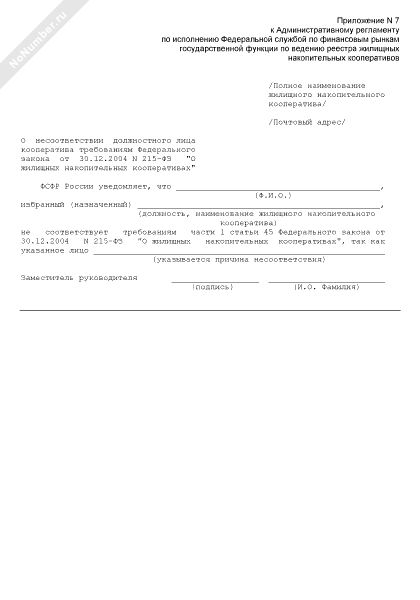 - 416Уведомление о несоответствии должностного лица кооператива требованиям Федерального закона от 30.12.2004 № 215-ФЗ «О жилищных накопительных кооперативах»