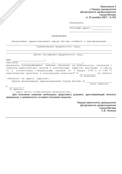 - 458Уведомление о переоформлении документа, подтверждающего наличие лицензии на деятельность, связанную с оборотом наркотических средств и психотропных веществ, внесенных в Список II в соответствии с Федеральным законом «О наркотических средствах и психотропных веществах»