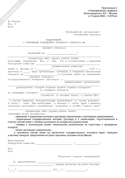 - 445Уведомление о признании победителя открытого конкурса на право заключения государственного контракта