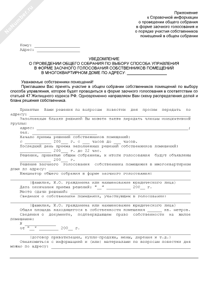 - 449Уведомление о проведении общего собрания по выбору способа управления в форме заочного голосования собственников помещений в многоквартирном доме на территории городского поселения Солнечногорск Московской области