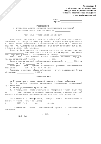 - 456Уведомление о проведении общего собрания собственников помещений в многоквартирном доме в г. Реутов Московской области