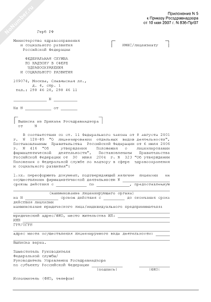 - 551Уведомление о переоформлении документа, подтверждающего наличие лицензии на осуществление фармацевтической деятельности