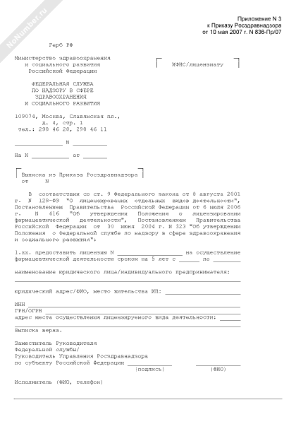 - 550Уведомление о предоставлении лицензии на осуществление фармацевтической деятельности