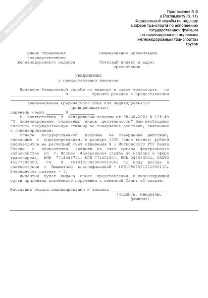 - 558Уведомление о предоставлении лицензии на осуществление перевозок железнодорожным транспортом грузов