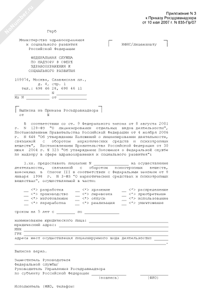 - 552Уведомление о предоставлении лицензии на деятельность, связанную с оборотом психотропных веществ, внесенных в Список III в соответствии с Федеральным законом от 8 января 1998 г. № 3-ФЗ «О наркотических средствах и психотропных веществах»