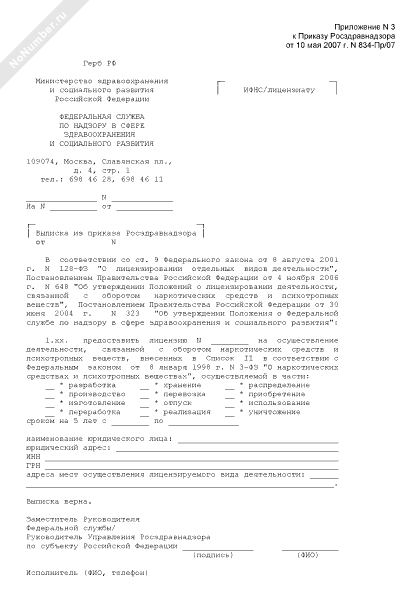 - 554Уведомление о предоставлении лицензии на осуществление деятельности, связанной с оборотом наркотических средств и психотропных веществ, внесенных в Список II в соответствии с Федеральным законом от 8 января 1998 г. № 3-ФЗ «О наркотических средствах и психотропных веществах»