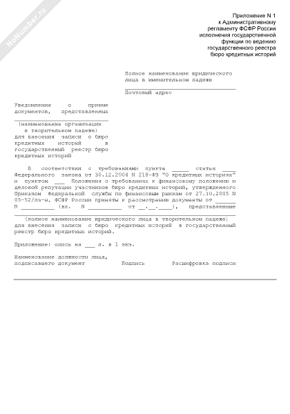 - 559Уведомление о приеме документов, представленных организацией для внесения записи о бюро кредитных историй в государственный реестр бюро кредитных историй