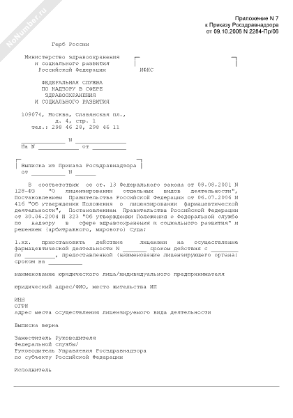- 544Уведомление о приостановлении действия лицензии на осуществление фармацевтической деятельности по решению суда