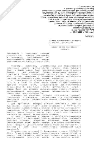 - 545Уведомление о проведении проверки достоверности сведений, содержащихся в документах, представленных для государственной регистрации выпуска (дополнительного выпуска) ценных бумаг