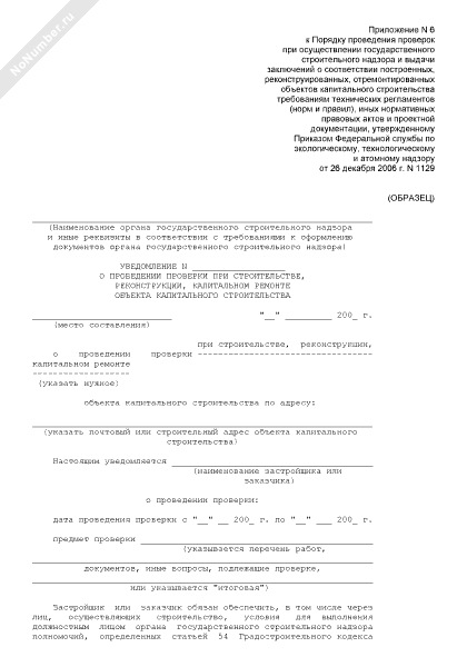 - 542Уведомление о проведении проверки при строительстве, реконструкции, капитальном ремонте объекта капитального строительства в соответствии с требованиями к оформлению документов органа государственного строительного надзора